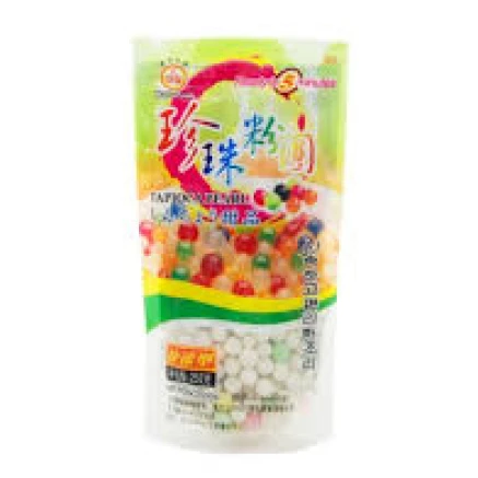 These large colourful tapioca pearls are famously used in a Taiwanese drink called ‘boba’ or bubble tea. These large coloured tapioca pearls are gelatinous spheres made from a natural starch extracted from a cassava shrub. The multicoloured quick-cook tapioca pearls are already part-cooked, so are ready in just 5 minutes.