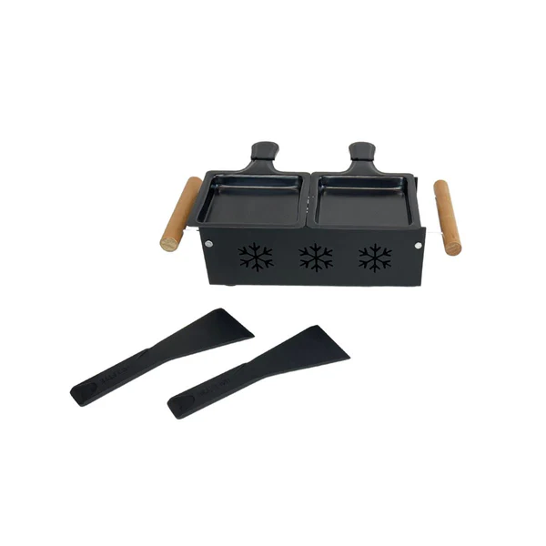 • Ce service raclette bougie est en acier pour une bonne diffusion de la chaleur et en bois pour les poignées, il est fourni avec deux spatules à raclette