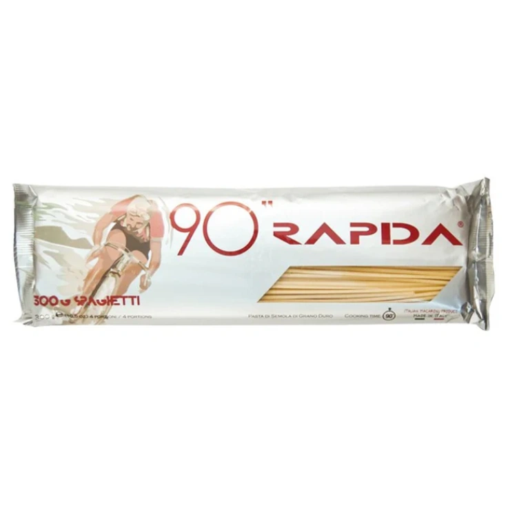 Thanks to the unique production process of Rustichella d’Abruzzo, this spaghetti-type pasta cooks in just 90 seconds from the packet – and it’s not precooked. It’s made with a special bronze die to create the clever shape that allows the pasta to cook so quickly. It even tells you when it’s done, with the small slit along its length closing up.