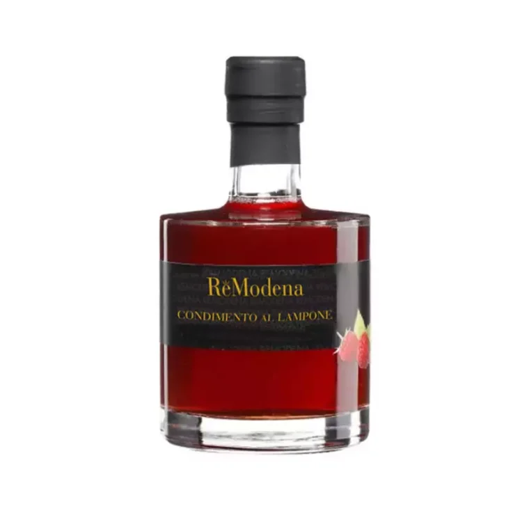 This Dressing with Raspberries combines the fine flavour Vinegar with the delicacy and the freshness of fruits. Like the other products of “Fruity Gamma” Re Modena, this dressing is produced with Lambrusco and Trebbiano grape varieties, without any type of colouring or thickening agents, but with juices and natural flavourings.