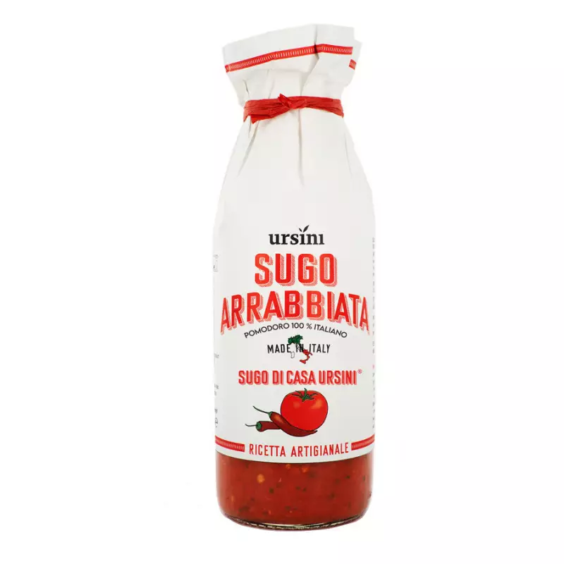 Casa Ursini’s ready-to-use Arrabbiata sauce is a spicy delicacy typical of Italian cuisine, prepared with high quality ingredients such as peeled tomatoes, fresh basil, garlic, parsley, hot chilli pepper and extra virgin olive oil. This sauce is ideal for seasoning a variety of different pasta shapes; Sugo all’Arrabbiata goes perfectly with penne rigate, spaghetti, fusilli and rigatoni. After heating it up for a few minutes, pour it over freshly drained pasta and stir well to ensure that every bite is packed with flavour. For an extra touch, add a sprinkling of grated Pecorino Romano cheese or a drizzle of Ursini extra virgin olive oil.