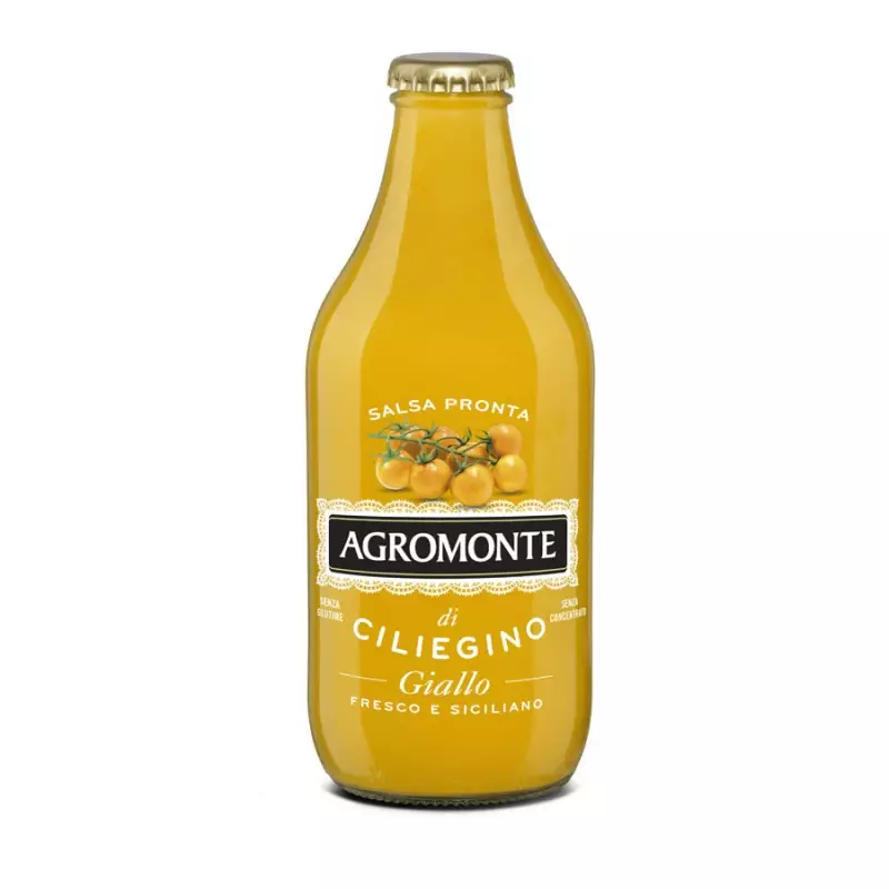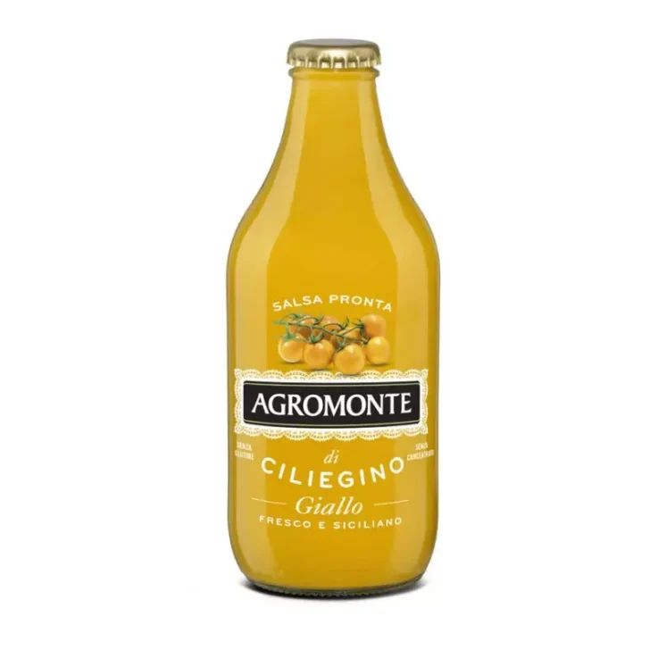 Agromonte Ready to use Yellow Cherry Tomato pasta sauce will give a refined touch and sweet taste even to the simplest and fastest recipes. The yellow cherries, a variety that is characterized by an extremely sweet flavor, are grown in greenhouses with natural methods and harvested by hand. Creamy, fragrant and very tasty, this sauce is made with carrots, extra virgin olive oil, shallots, salt and sugar.
