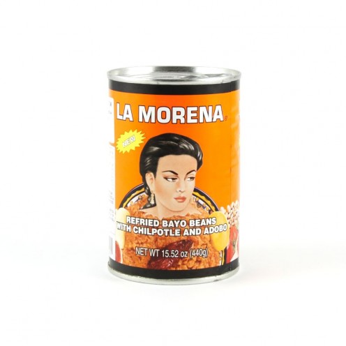 This authentic La Morena Mexican sauce of refried bayo beans with chipotle and adobo makes a delicious filling for burritos and enchiladas. The La Morena, homemade-style variety uses quality ingredients – a bayo bean base, with the chipotle chillies, giving it more smoky notes than normal refried bean sauces.