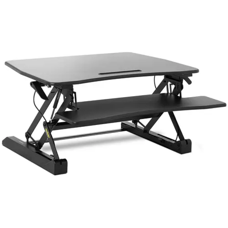 Ce rehausseur accueille jusqu’à deux écrans d’ordinateur sur son spacieux plateau mesurant 90 x 50 cm. La plateforme assis-debout solide et durable se compose d’un squelette en acier très robuste et de deux plateaux de fibres. Ainsi, elle supporte une charge de jusqu’à 15 kg sur son plateau pour écrans et jusqu’à 2 kg sur son support clavier souris.