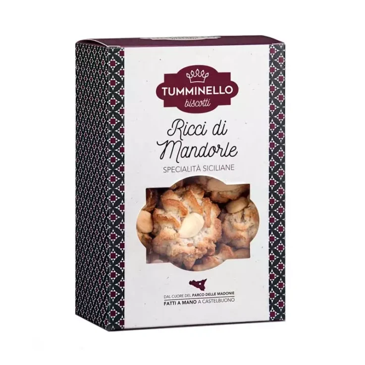 Ricci Almond Paste Cookies by Tumminello are made only with the highest quality Sicilian Almonds that exceed 50% of the dough, giving life to a soft and fragrant Sicilian-flavored pastry. It is an authentic traditional recipe since almond paste is a real typical Sicilian sweet specialty, which has its roots in the tradition and history of the island itself.