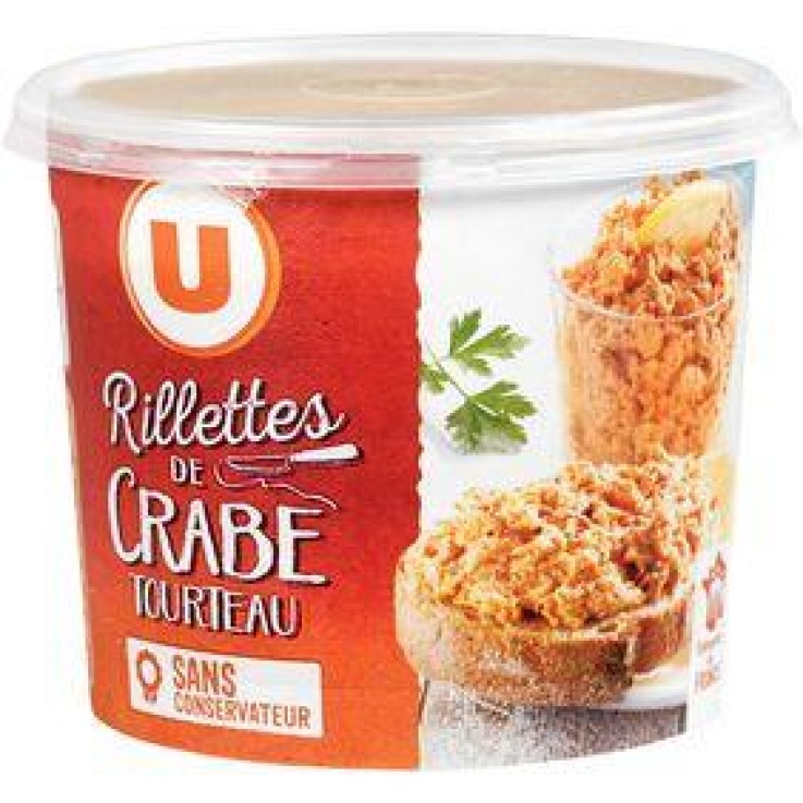 Chair de POISSON, CRABE-TOURTEAU(Cancer pagurus) 20%, huile de colza, eau, fibre de pousse de bambou, dextrose, protéines de LAIT, sel, arôme, gélifiant : gomme xanthane, piment. Traces éventuelles de céleri, céréales contenant du gluten, fruits à coques, lupin,mollusques, moutarde, oeuf, graines de sésame et soja