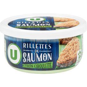 SAUMON (Salmo salar) 55% (dont SAUMON fumé 7%), oignon, huile de tournesol, CREME 6%, jus de citron concentré 2%, LAIT écrémé en poudre, concentré de tomate, sel, épaississants : gommes guar et xanthane, ciboulette 1,4%, persil