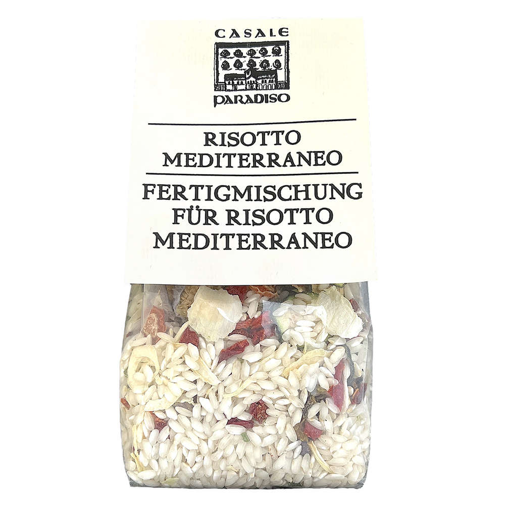 Mélange prêt à l’emploi pour risotto préparé à partir de riz Carnaroli et de divers légumes.