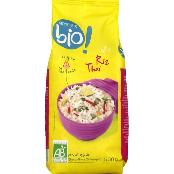 Riz thaï long grain de qualité supérieure issu de l’agriculture biologique Pays de fabrication : THAILANDE Monoprix Exploitation Monoprix Exploitation 92116 Clichy Cedex