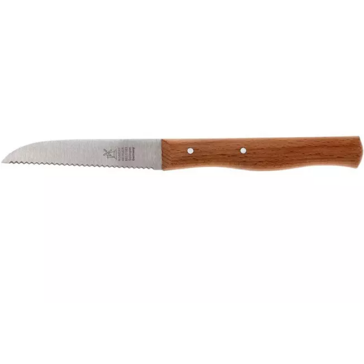Le couteau moulin à vent populaire de Robert Herder en acier inoxydable avec dentelure. Parce que la lame est affûtée très finement, elle peut couper comme aucune autre. Le couteau à légumes idéal !