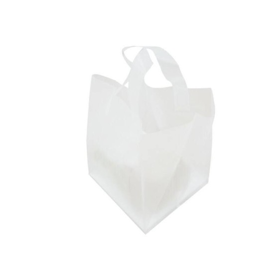 Le sac cabas pour traiteur en plastique transparent givré haute densité de 60 microns d’épaisseur est un sac plastique alimentaire qui s’adapte à tous les produits et aliments grâce à son format de 22 cm de large, 28 cm de haut et 21 cm de soufflet.