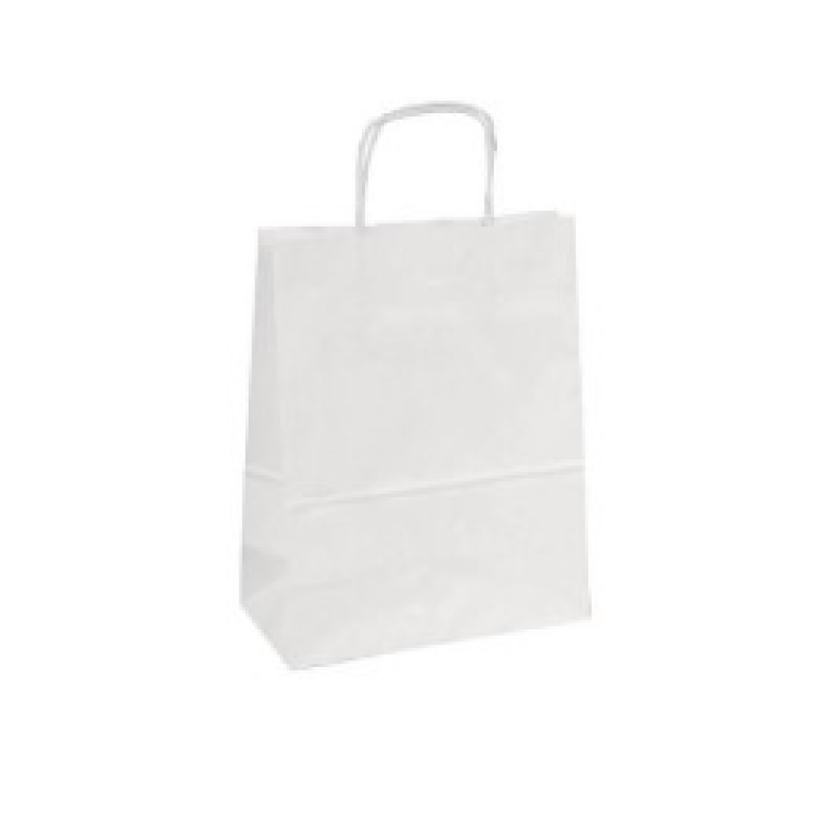 Sac papier kraft blanc à poignées torsadées 22 + 10 x 31 cm – par 50