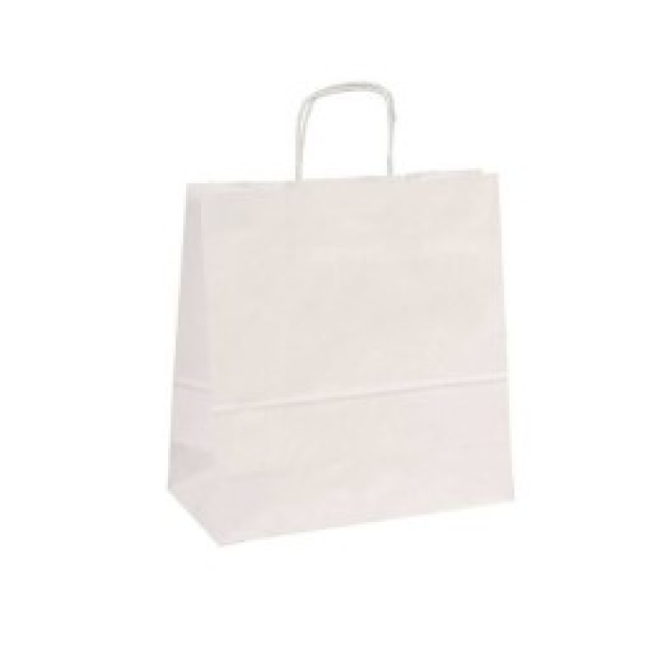 Sac papier kraft blanc à poignées torsadées 35 + 14 x 44 cm – par 50