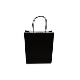 Sac papier kraft noir à poignées torsadées 18 + 8 x 22 cm – par 50