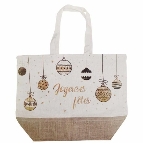 Sac rĂ©utilisable toile de jute “Joyeuses fĂȘtes” 40 + 20 x 56 cm – par 50