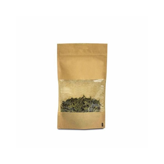 Sachet Doypack kraft brun avec zip et fenĂȘtre 11 + 6,5 x 18,5 cm – par 100