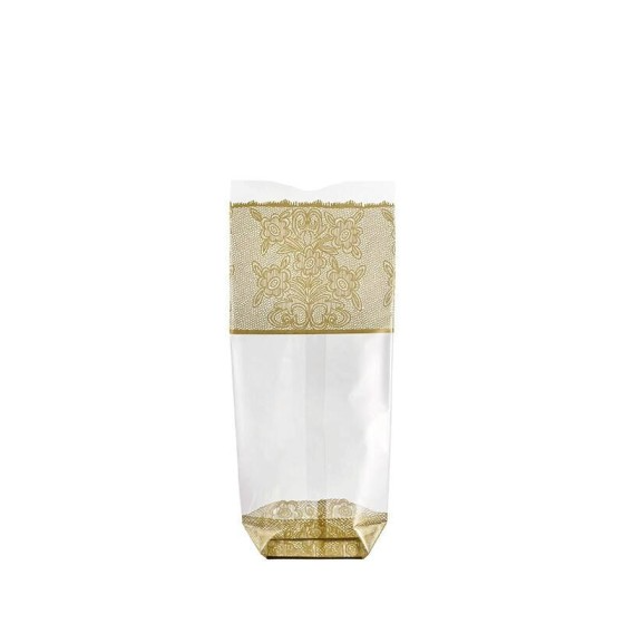Sachet plastique fond carton “Dentelle or” 10 x 18 cm – par 100