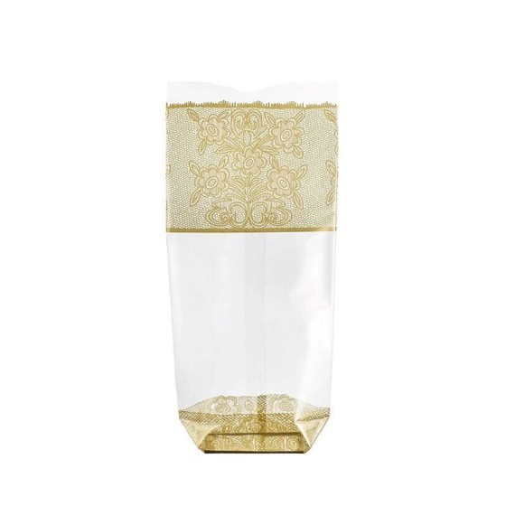 Sachet plastique fond carton “Dentelle or” 14 x 30,5 cm – par 100