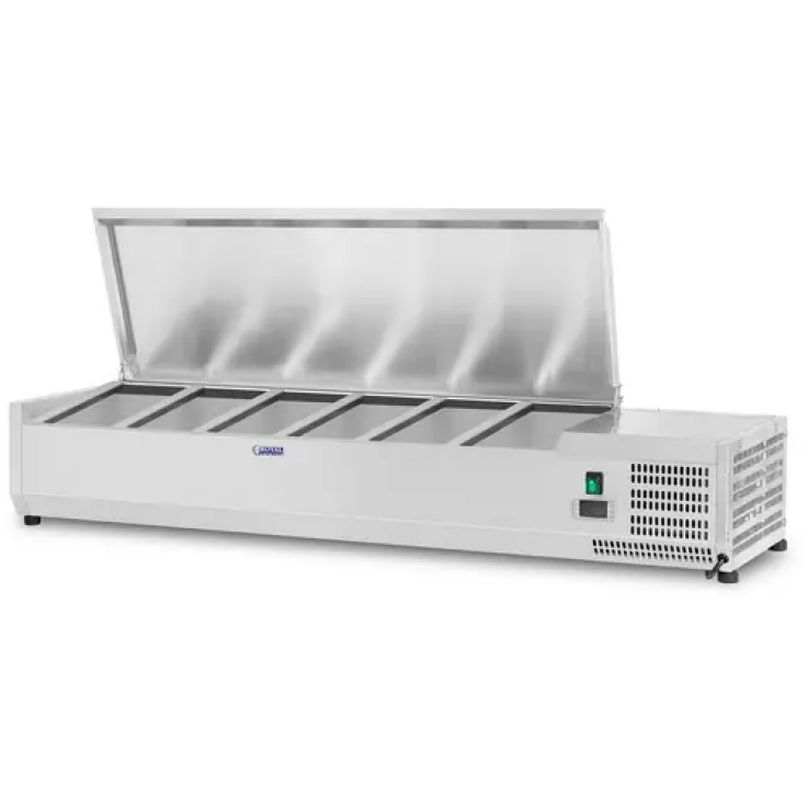 La saladette à poser RCKV-140/33-6S de Royal Catering garantit la fraîcheur et l’attractivité de vos aliments, en les gardant et les conservant efficacement au frais, qu’ils soient prêts à servir ou destinés à la transformation. Le réfrigérateur professionnel de Royal Catering a été conçu pour les restaurants, les cafés, les glaciers, les bars à service rapide, les hôtels, etc. Ce produit est aussi un précieux atout pour les pizzerias et les bars à salades.