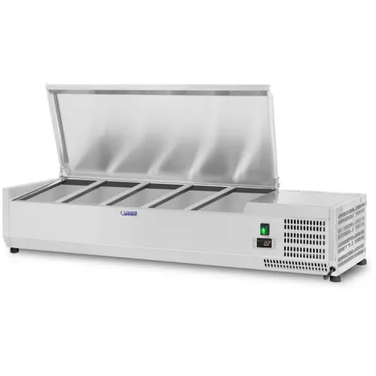 La saladette à poser RCKV-150/39-S5 de Royal Catering garantit la fraîcheur et l’attractivité de vos aliments, en les gardant et les conservant efficacement au frais, qu’ils soient prêts à servir ou destinés à la transformation. Le réfrigérateur professionnel de Royal Catering a été conçu pour les restaurants, les cafés, les glaciers, les bars à service rapide, les hôtels, etc. Ce produit est aussi un précieux atout pour les pizzerias et les bars à salades.