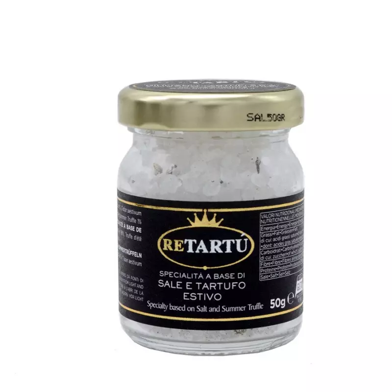 Giuliano Tartufi’s Salt Flavoured with Summer Truffle is the perfect seasoning to enrich your dishes with the unmistakable aroma of summer truffle (Tuber aestivum Vitt). This fine salt enhances the flavour of your dishes, releasing its full aroma when used on grilled meats, grilled fish and vegetables. Add a touch of elegance and refinement to your dishes with Giuliano Tartufi’s Summer Truffle Flavoured Salt, turning every recipe into a unique culinary experience.