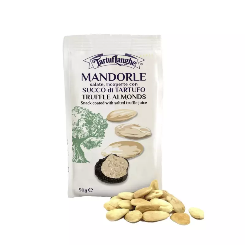 Tartuflanges salted truffle almonds are coated with a thin layer of truffle juice. Tasty and refined, these savory truffle snacks are perfect for any occasion. Thanks to their unique flavor and quality ingredients, they become ideal for an elegant and surprising appetizer. Also perfect as a gourmet snack during work breaks, or to add a touch of class to your picnics. They can be paired with a good white wine or prosecco to further enhance the truffle flavor. Choose these snacks to share with friends or to always have a sophisticated and delicious snack on hand.