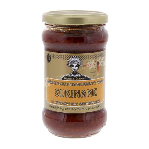 Ingrédients:    poivre madame jeanette (37,00%), oignon, huile végétale (huile de tournesol), sucre, ail, amidon de maïs modifié, pâte de crevettes, sel, régulateur d’acidité (acide acétique, acide citrique), colorant (caramel alcalin), conservateur (sorbate de potassium)