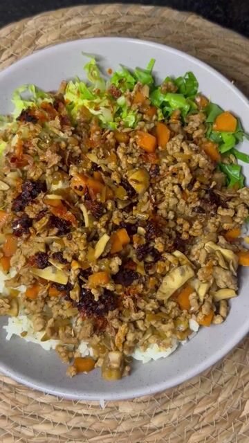 A simple and healthy mid-week dish that combines a variety of vegetables with lean pork mince, seasoned with a rich sauce made from soy, oyster sauce, and shaoxing wine. Serve this flavorful mixture over rice and fresh lettuce, topped with crispy shallots and a drizzle of chili oil for added spice and texture.