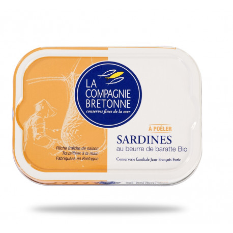 Pour cette préparation, les sardines sont cuites à l’eau. Après avoir été mises en boîte manuellement, les sardines sont recouvertes de beurre de baratte ½ sel breton et bio.