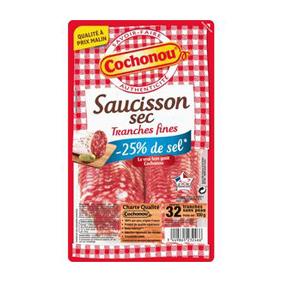 Saucisson sec supérieur pur porc teneur sel réduit, COCHONOU, 35 tranch es de 100g