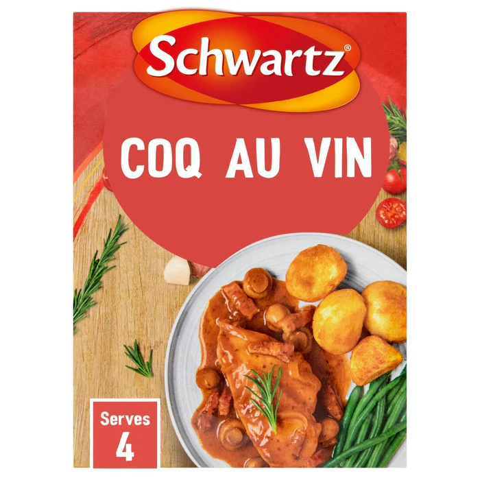 Schwartz Coq au Vin Recipe Mix is bursting with expertly blended herbs and spices, including garlic and rosemary, for a rich, aromatic and hearty French casserole everyone will love. Ready in 1 Hr 10 Mins, Full of Flavor, Suitable for Slow Cookers, No Hydrogenated Fat, No Added MSG, No Artificial Colors.