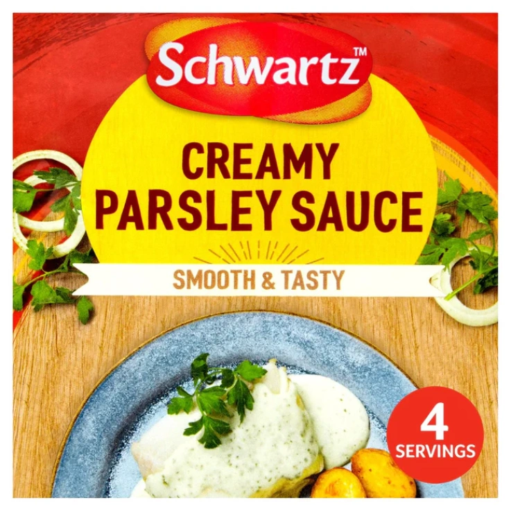 Create the classic English sauce at home with Schwartz Creamy Parley Sauce Recipe Mix, expertly blended with parsley and onion for a delicious flavor everyone will love. The perfect match for baked or pan-fried fish, gammon, chicken or mashed or boiled potatoes. Simply follow the 2 easy steps on the pack to create a great tasting Creamy Parley Sauce in 3 minutes. Full of Flavor, No Artificial Colors, No Added Preservative or MSG, No Hydrogenated Fat, Suitable for Vegetarians.
