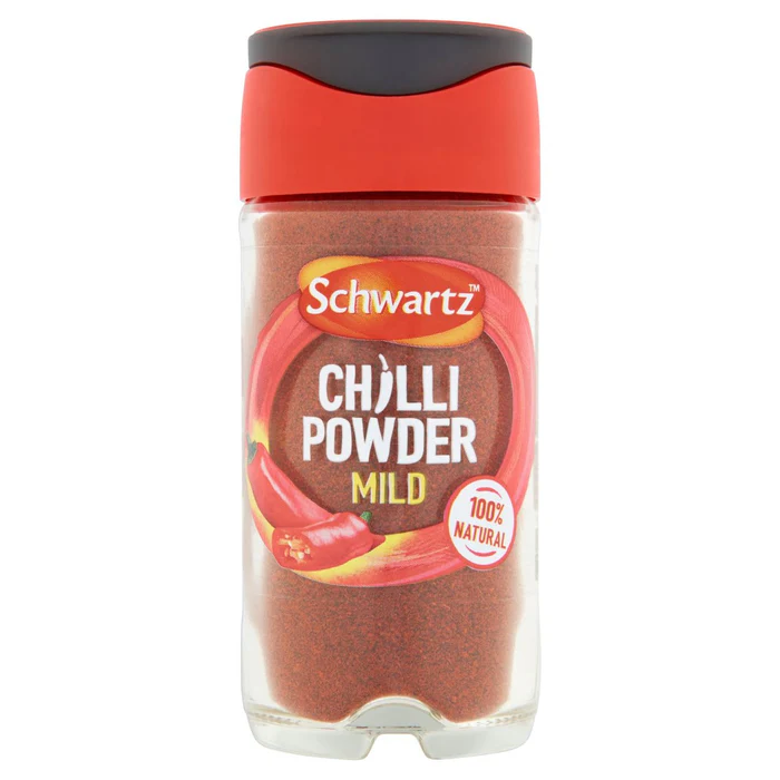 Schwartz Mild Chili Powder is picked with care. Packed with flavor. Picked with care. Packed with flavor, Schwartz Mild Chili Powder is a mild blend with chili pepper, cumin, oregano and garlic, Perfect for bringing out the heat in everything from chili con carne to chickpea curries and shepherd’s pies, this versatile ingredient also works well to add a kick to sauces, dips and salad dressings.