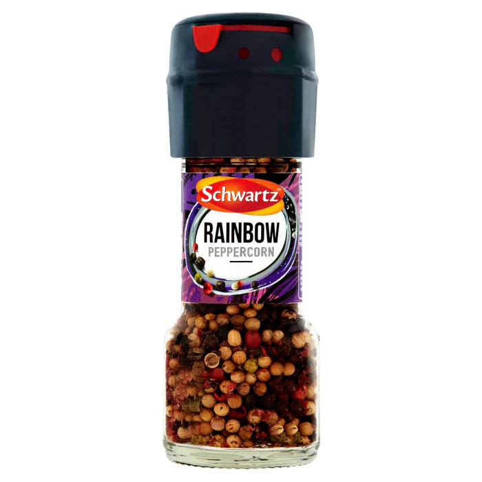 Schwartz Rainbow Peppercorn are Picked with care. Packed with flavor. Schwartz Rainbow Peppercorn is a kitchen cupboard essential for adding a warm, spicy and robust peppery flavor to all your favorite dishes, whether during cooking or at the table. This unique blend of black, pink and white peppercorns is perfect for seasoning roasted vegetable, meat and fish dishes, as well as for bringing out the flavor of marinades, stocks and soups. Picked with care. Packed with flavor, also goes great with cheese-based dishes, salads, breads and savory biscuits.
