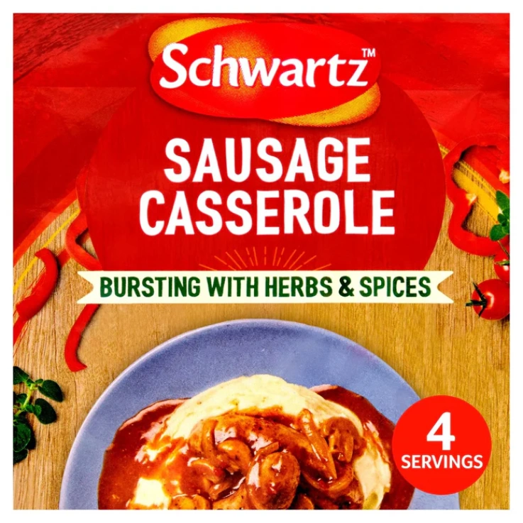 Schwartz Sausage Casserole Recipe Mix is bursting with expertly blended herbs and spices, including paprika, red bell peppers and oregano, for a deep, rich flavor everyone will enjoy. Picked with care. Packed with flavor, simply follow the 3 easy steps on the pack to create a delicious casserole in 70 minutes.