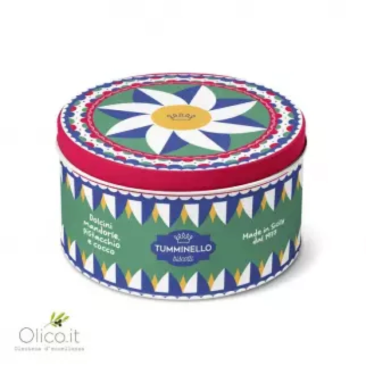 The colorful Tumminello collectible tins contain 120 grams of mixed biscuits. Each of them bears the name of a character from Greek mythology. Scilla, for example, was a sea monster that terrified sicilian sailors who ventured into the Strait of Messina.