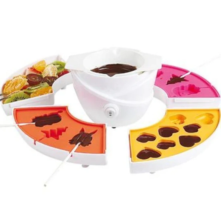 Grâce à ce kit de fondue au chocolat, vous pourrez réaliser vos propres bonbons et sucettes au chocolat.