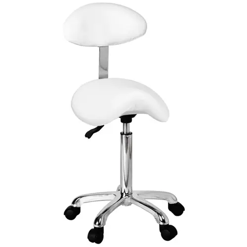 Le siège d’appui possède une finition de qualité et la surface d’assise est recouverte d’un revêtement blanc en Polyuréthane résistant. Ainsi, le nettoyage et l’entretien sont simples et faciles à effectuer. Le dossier est agréable et fournit encore plus de confort tout en garantissant une assise stable avec un maintien dorsale sûr. Ce siège peut être utilisé de manière durable et flexible grâce à son pied métallique en forme d’étoile muni de roues silencieuses, le rendant ainsi très mobile. La hauteur du siège est réglable entre 52 et 67 cm grâce à un cylindre de gaz.