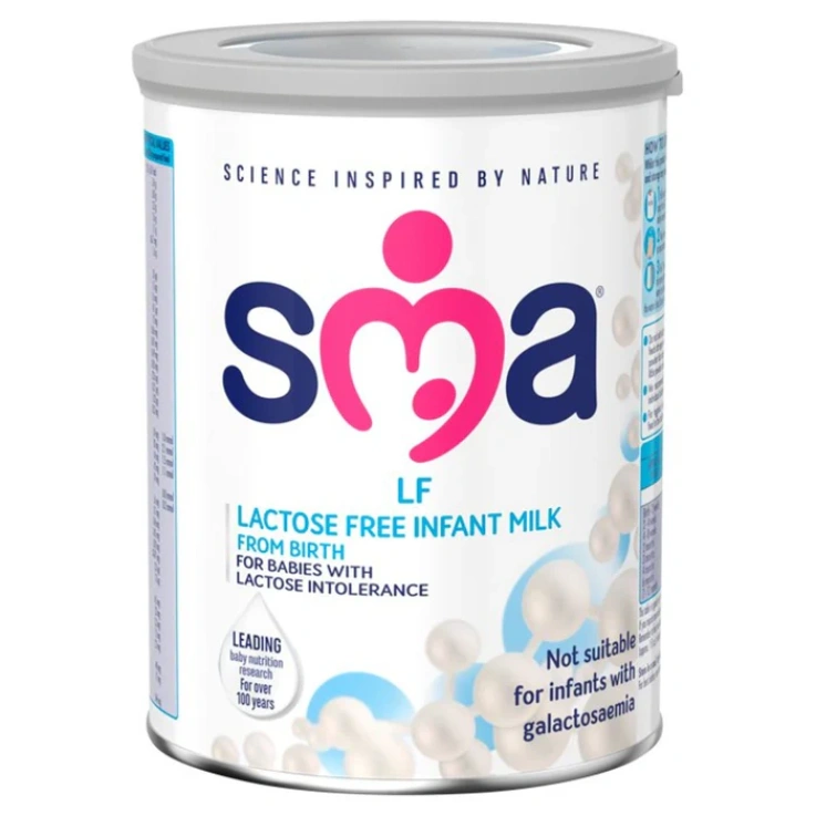 Enriched with Omega 3 DHA. SMA LF® is a lactose-free infant milk for babies who are lactose intolerance, or who are experiencing symptoms such as diarrhoea, tummy ache or wind caused by temporary lactose intolerance. SMA® LF Lactose Free Infant Milk is nutritionally complete and suitable as the sole source of nutrition for infants from birth. For older babies, it can be used as part of a mixed diet. It is suitable for up to 18 months of age and may be used for older children and adults with lactose intolerance as part of a lactose free diet. Nutritionally complete lactose free infant milk, Suitable from birth, Contains fish oil as a source of Omega 3, Lactose Free (not suitable for infants with galactosaemia)
