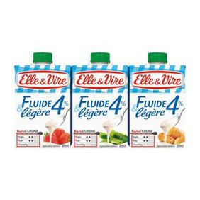 Spécialité laitière extra légère UHT ELLE&VIRE, 4%MG, 3 briquettes de20cl