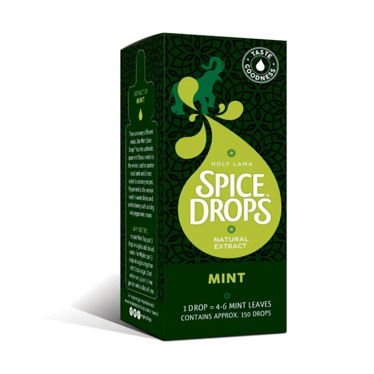 Spice Drops are concentrated extracts that retain all the natural goodness and flavor of the herbs, fruits and flowers. There are many different mints. Our Mint Spice Drops® has the authentic spearmint flavor which is the mint which goes with roast lamb and is best suited to savory recipes. Peppermint is the version for sweet dishes and confectionery such as ice cream and peppermint cream.