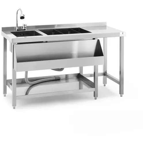 Cette station à cocktails est fabriqué en acier inoxydable de qualité alimentaire. Ses surfaces lisses sont faciles à nettoyer, même si elles collent à cause de traces d’alcool ou de sirop. Elles donnent alors un aspect propre et hygiénique qui inspirera confiance à votre clientèle. Le comptoir possède un rebord afin de protéger les alentours des éclaboussures. Enfin 6 pieds réglables sont prévus p