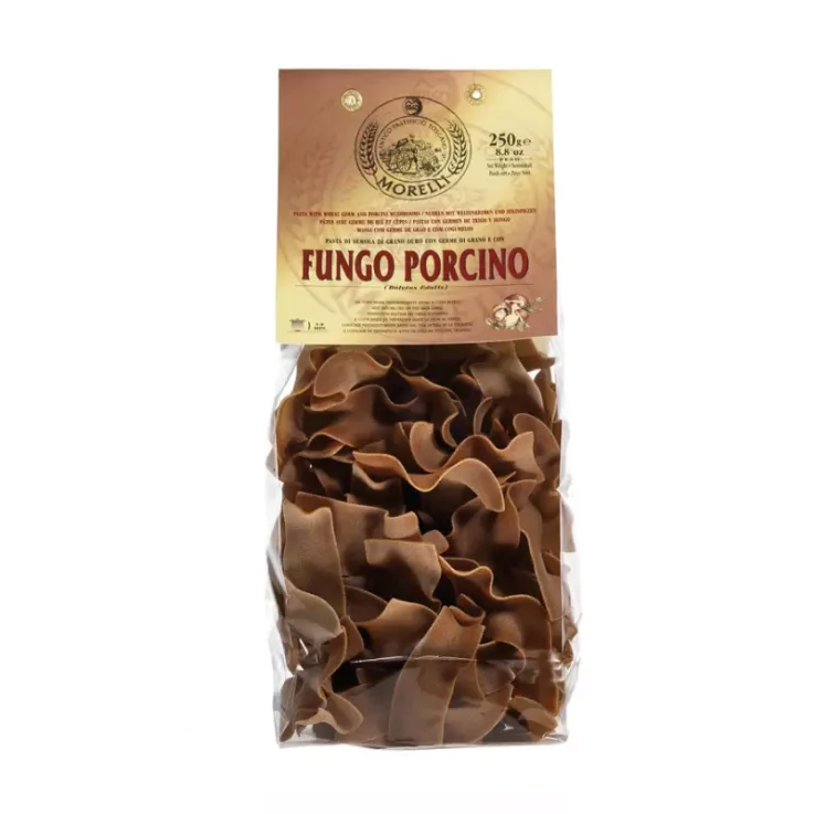 Antico Pastificio Morelli Porcini Mushroom Straccetti are rich in wheat germ, vitamins and vegetable protein. They contain natural porcini mushroom extract for a unique and authentic taste.