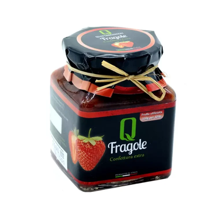 Quattrociocchi Extra Strawberry Jam is an unparalleled taste experience. The strawberries are picked and processed directly from the fresh, at low temperature, keeping their intense aroma and flavour intact. Prepared according to old traditional recipes, Quattrociocchi uses only the highest quality fruit, with a proportion of 130g of fruit for every 100g of product. Enjoy it spread on fresh bread, croissants or used as a topping for yoghurt and ice cream. Accompany fresh or mature cheeses for an irresistible gourmet touch. Your imagination in the kitchen will have no limits with this delicacy!