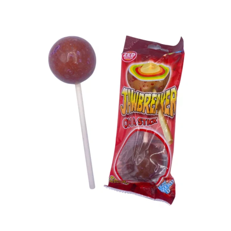 ZED CANDY – Boule de Mammouth Framboise en version sucette géante qui change de couleur et de goût avec un chewing-gum au centre – Vendu en gros conditionnement dans une boite de présentation de 15 pcs