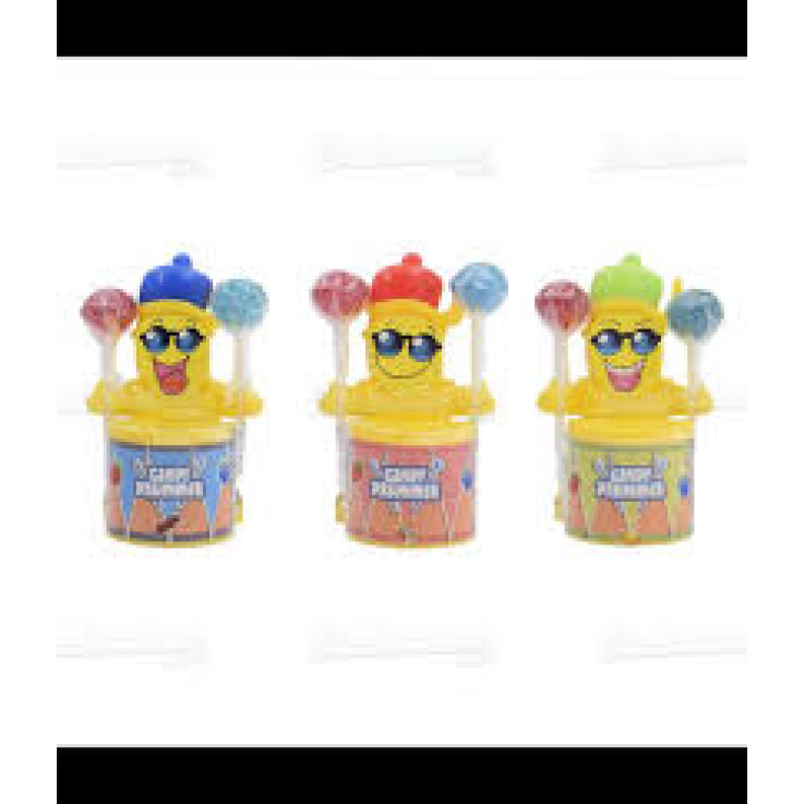 FUNNY CANDY – Sucette avec Poudre Acidulée contenu dans un tambour en jouet – Vendu en gros conditionnement dans un carton de présentation contenant 12 unités.