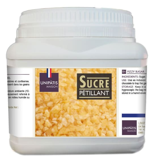 Souvenir d’enfance ou découverte, le sucre pétillant, saupoudré à l’envoi sur vos desserts ou incorporé dans un chocolat, étonnera vos convives et amusera les enfants.