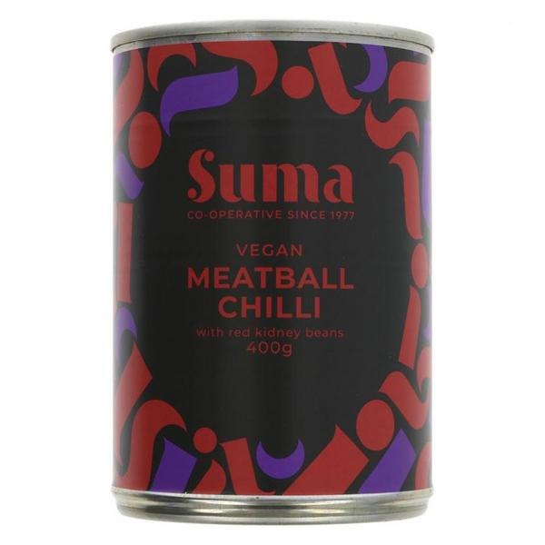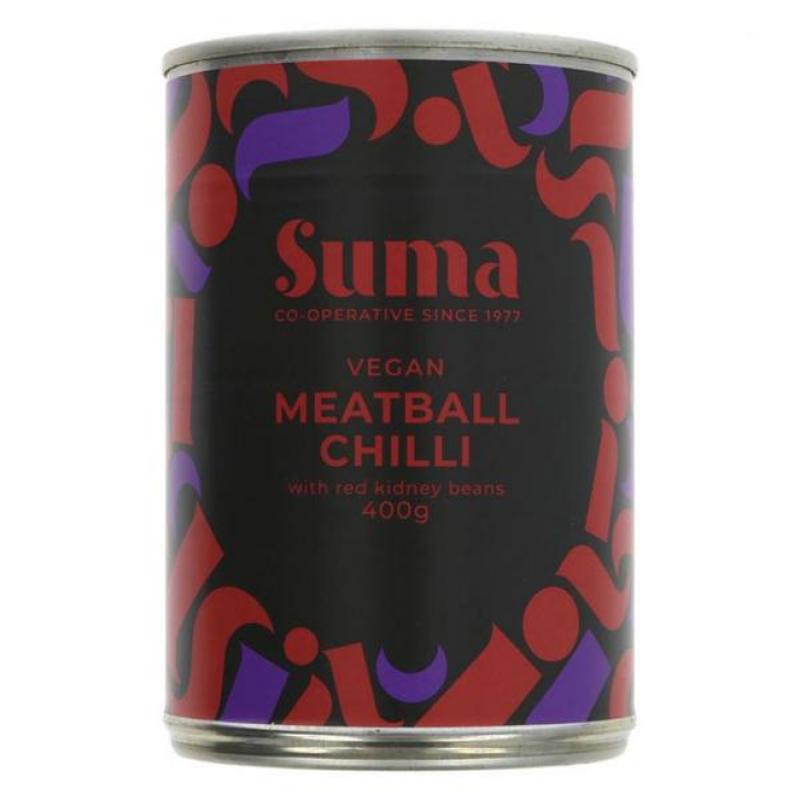 Meatball Chilli Vegan ingrédients : Eau, haricots rouges (20%), boulettes de viande vegan (15%) [protéine de soja texturée réhydratée, oignon, huile de colza, isolat de protéine de soja, sel marin, épaississants : méthylcellulose, carraghénane ; fécule de pomme de terre, arôme naturel, levure déshydratée, épices, sucre, extrait de malt d’orge, poudre d’oignon, extrait de levure, poudre d’ail], purée de tomate (4,4%), amidon de maïs modifié, sel, sucre, poudre d’oignon, cumin moulu , coriandre moulue, paprika moulu, piment en poudre.