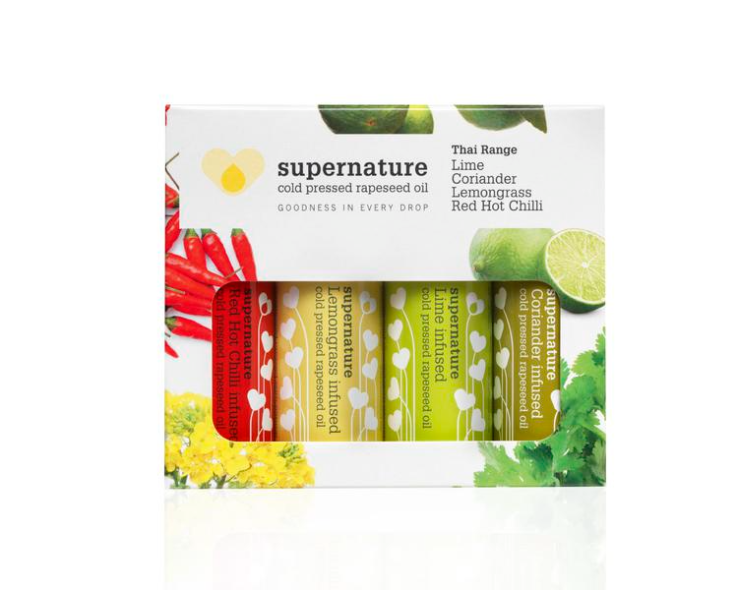 Une bouteille de chacune des huiles de colza infusées de citron vert, de citronnelle, de coriandre et de piment de Supernature fait de cette collection thaïlandaise un excellent ajout à la cuisine de n’importe qui. N’hésitez pas à expérimenter les saveurs et les arômes, assurés que ces huiles de colza fabriquées avec amour ont été pressées à froid pour conserver leur bonté naturelle.