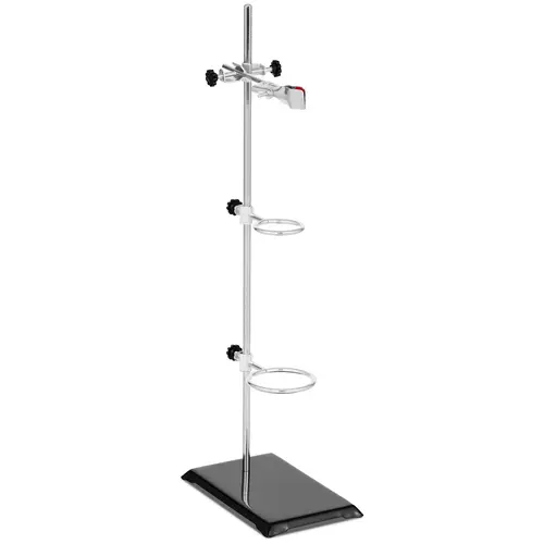 Ce support statif universel se compose d’un socle stable et d’une tige en fer, d’une noix d’assemblage solide avec pince et de deux anneaux. Le socle mesure 20 x 14 cm, si bien qu’il est assez grand pour y poser un récipient en cas de besoin. La tige d’une longueur de 57 cm offre beaucoup de liberté pour les montages en hauteur. Enfin, la noix d’assemblage servant à poser une pince peut être solidement fixée à la tige d’un diamètre de 10 mm.